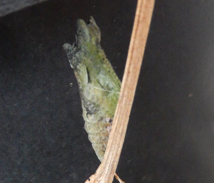 蛹になった1日目のものです。予想に反して緑がでていました。