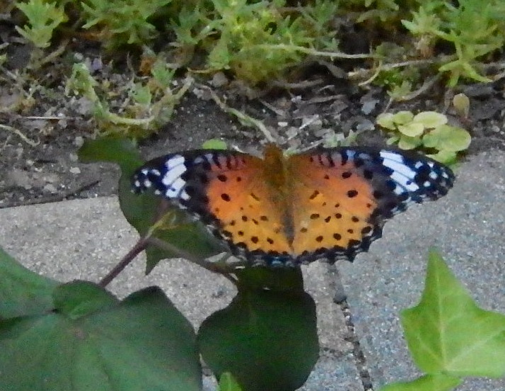 春の終わり頃から初夏にかけて必ず庭にやってきて,卵を産みます。肉眼より写真の方が翅の色はカバマダラに似ています。鳥の眼にはどうでしょうかね。