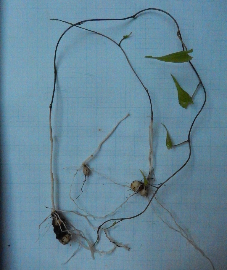 経過をまとめてみると,2020年6月にプランタで成長を始めたサツマイモの塊根は気がつくと地面から飛び出していました。この現象に再現性を確かめる目的で,室内で栽培していた発芽していた塊根を7月にプランタに移植しましたが,脱出劇は見られませんでした。秋の収穫は地上部のみにして,観察を継続しましたが,2021年の冬(前年12月から)は寒さが酷しかったためか地下の栄養体はすべて枯死したと思われます。
