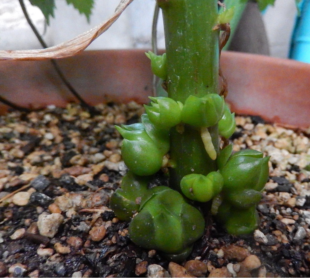 室内で栽培してしたもので,芽が上部だけでなく下部からも出ていました。