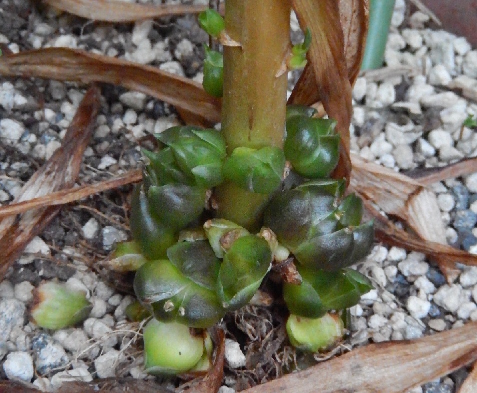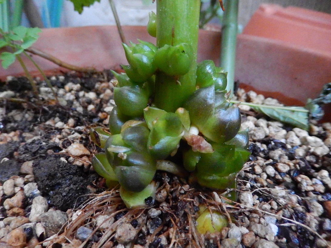 次に,疑問2ですが,同様な情報があります。また,自宅で栽培している株の中にも比較的大きな茎を形成しているものが複数あり,不連続に大きいともいい難いようです。
