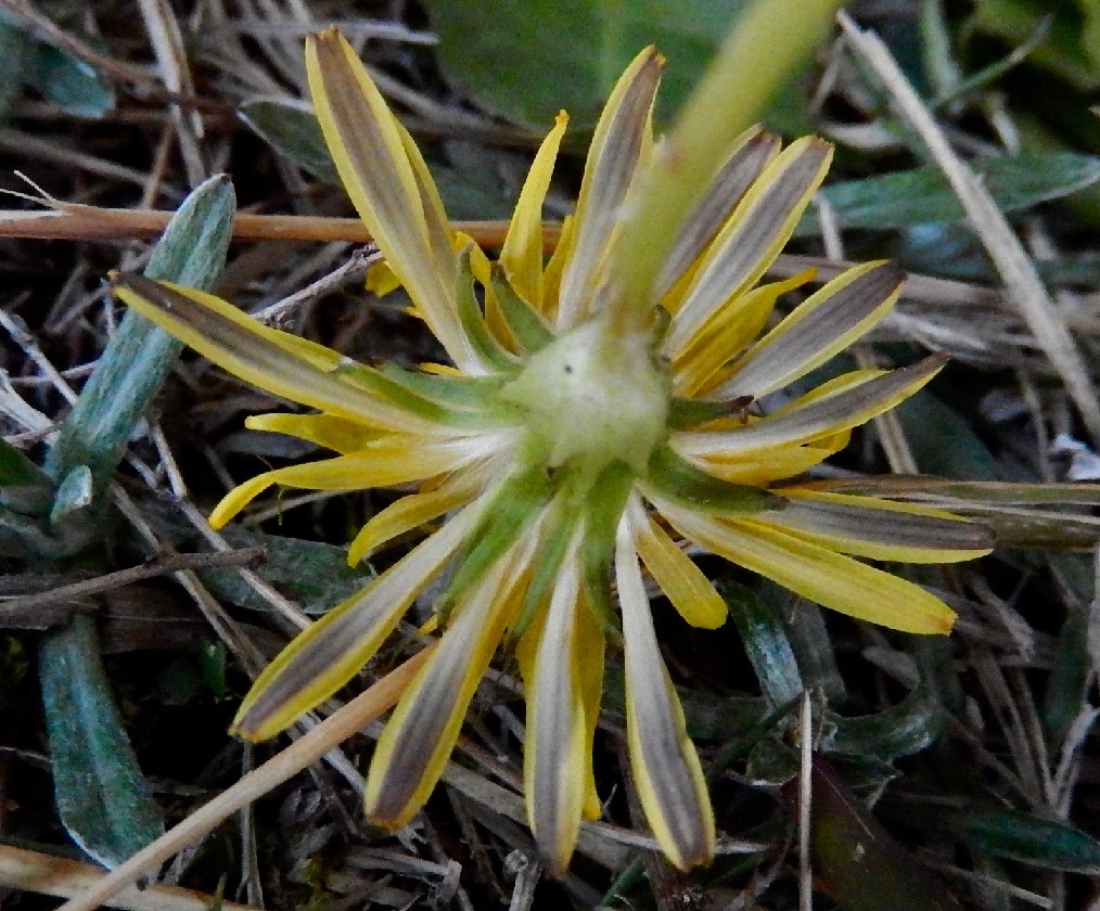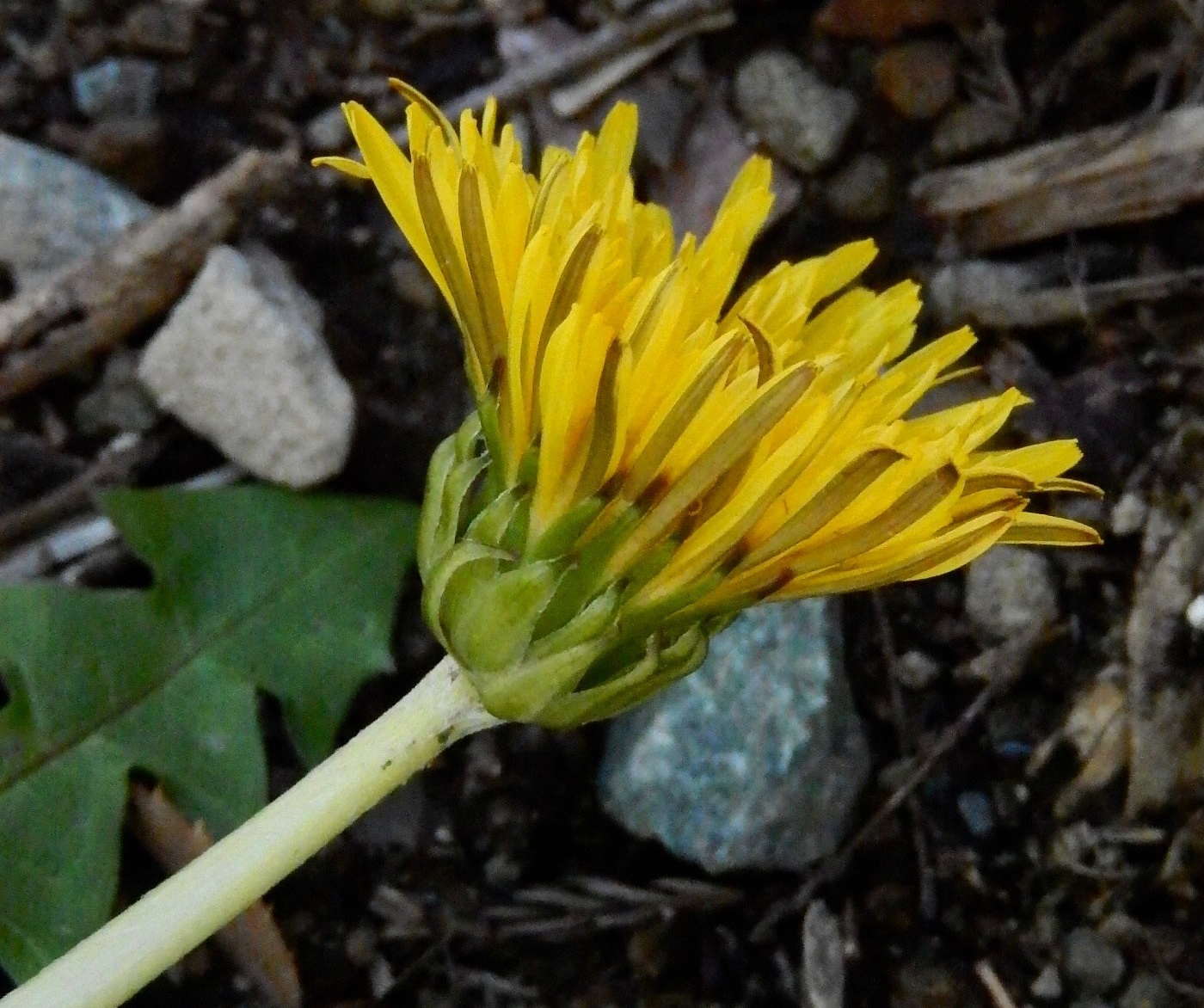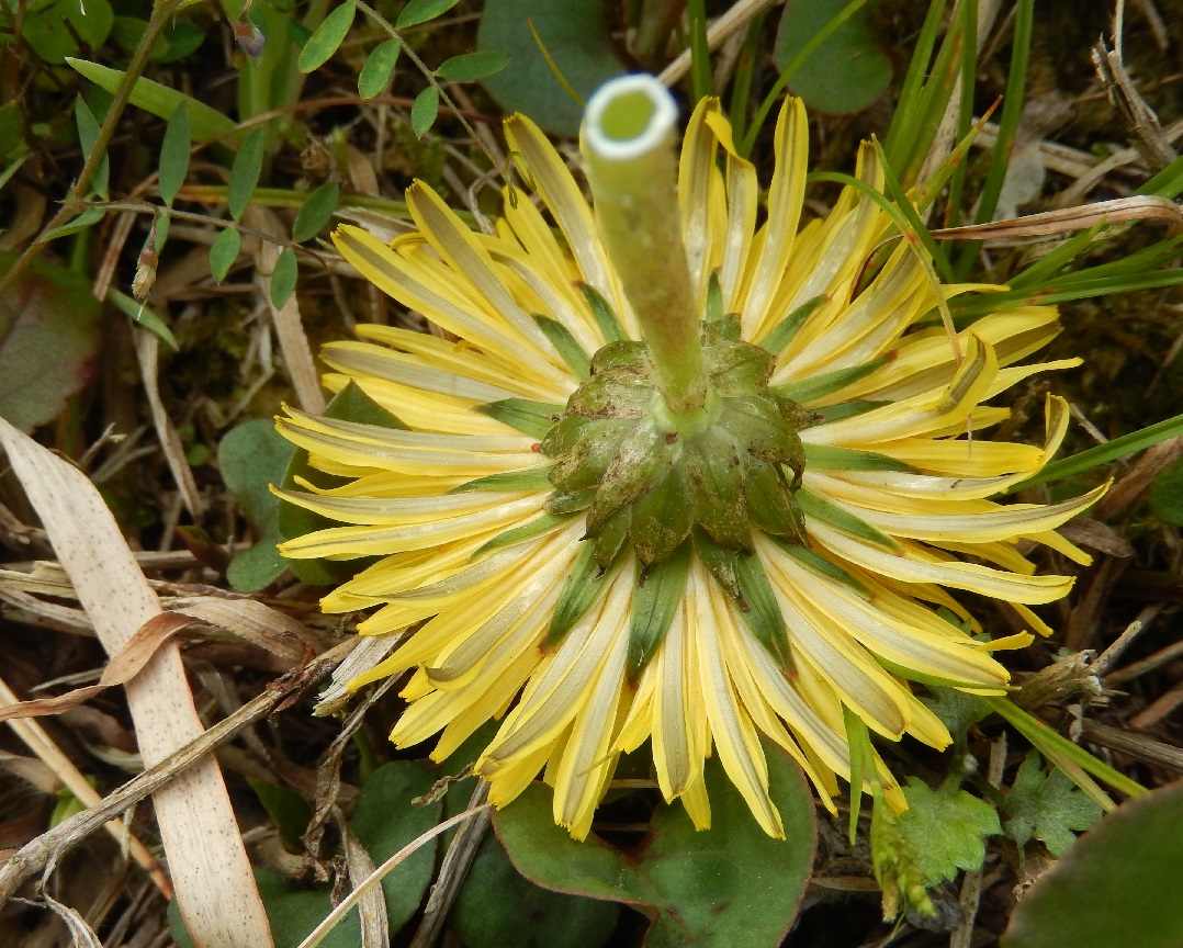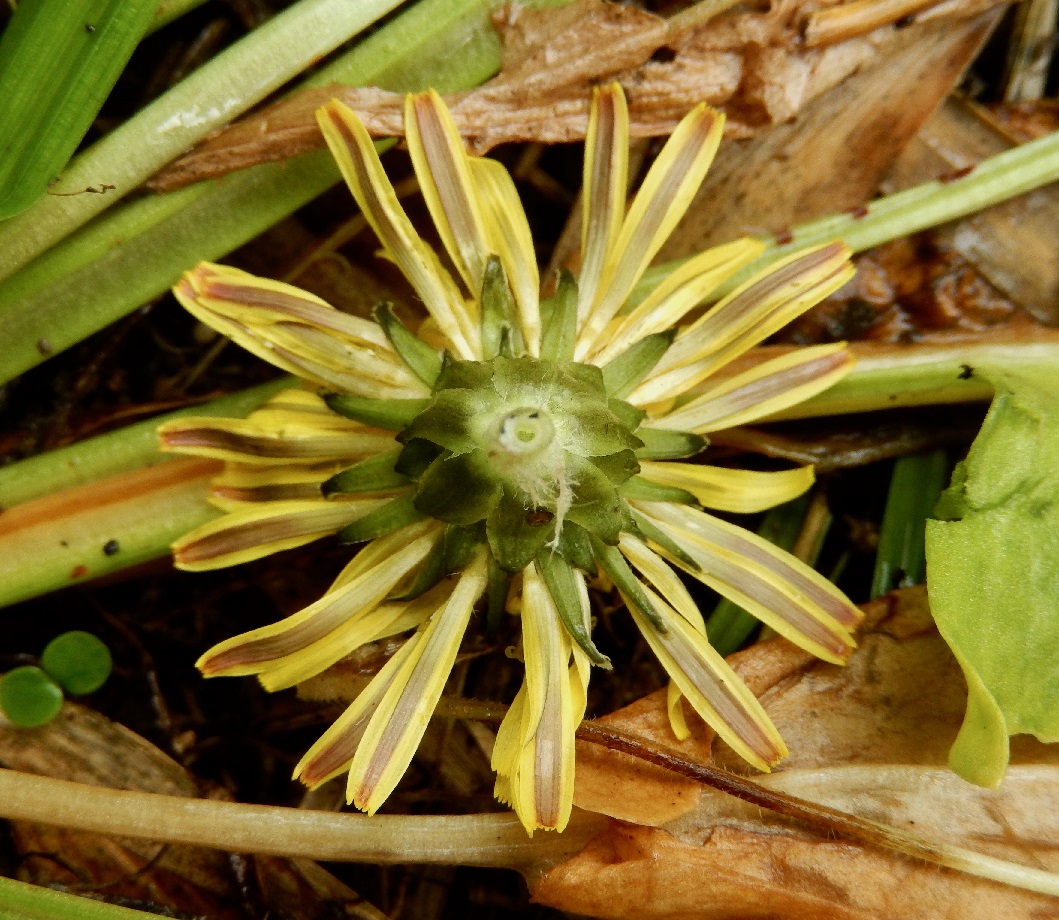 頭花を上と下から見た様子です。総包片のつき方が他のタンポポとは少しことなるような気がします。