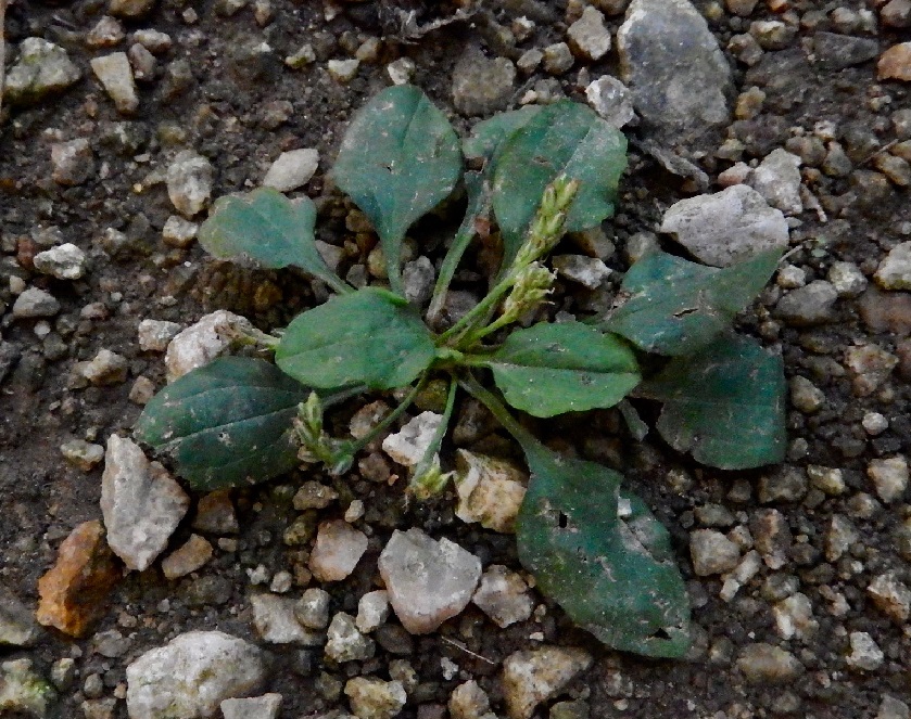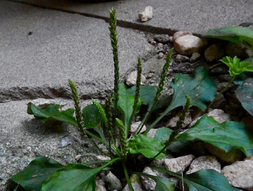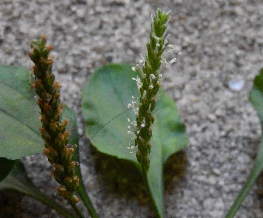 asiatica L.」です。Plantago は属名でplantaはラテン語で,「足跡,足の裏で運ぶ」という意味だそうです。最後のL.は二名法の生みの親で「分類学の父」と呼ばれたリンネの略号です。何と学名が生まれた18世紀には,オオバコが何かにくっついて運ばれることは知られていたことになります。