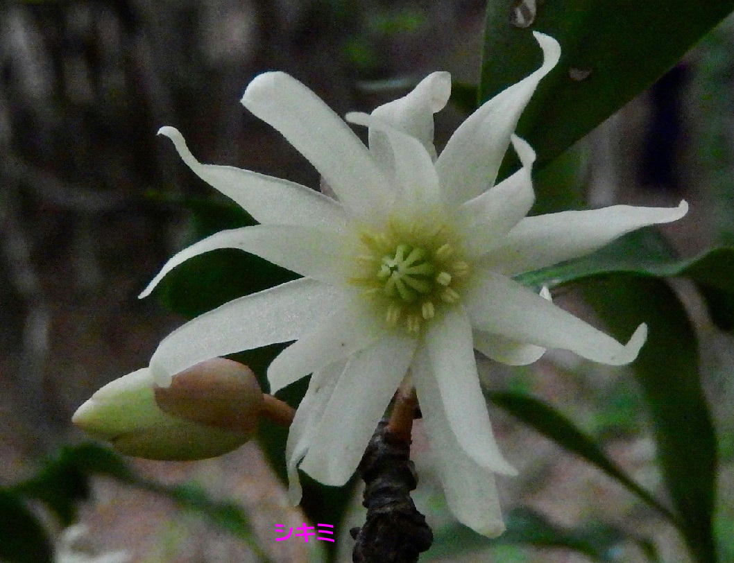 めしべは被子植物の雌性生殖器ですが,その構成単位を心皮と呼びます。1つのめしべは1つの心皮からなる場合もあれば,複数の心皮が合体したものもあります。シキミでは,花の中心部に1つの心皮からなる構造が,規則正しく分離して8列あり,中央で接近しています。