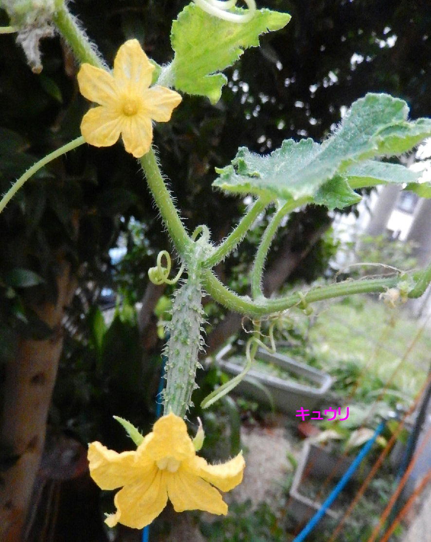 上が雄花,下が雌花。単為生殖をするらしく,収穫には雄花はなくてもいいとのことです。
