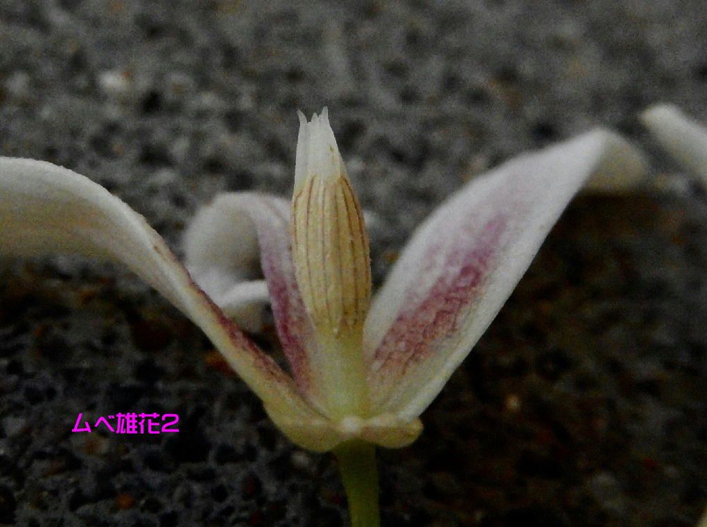 雄花ではめしべは簡単には確認できませんが,雌花には退化したとされるおしべか見えます。