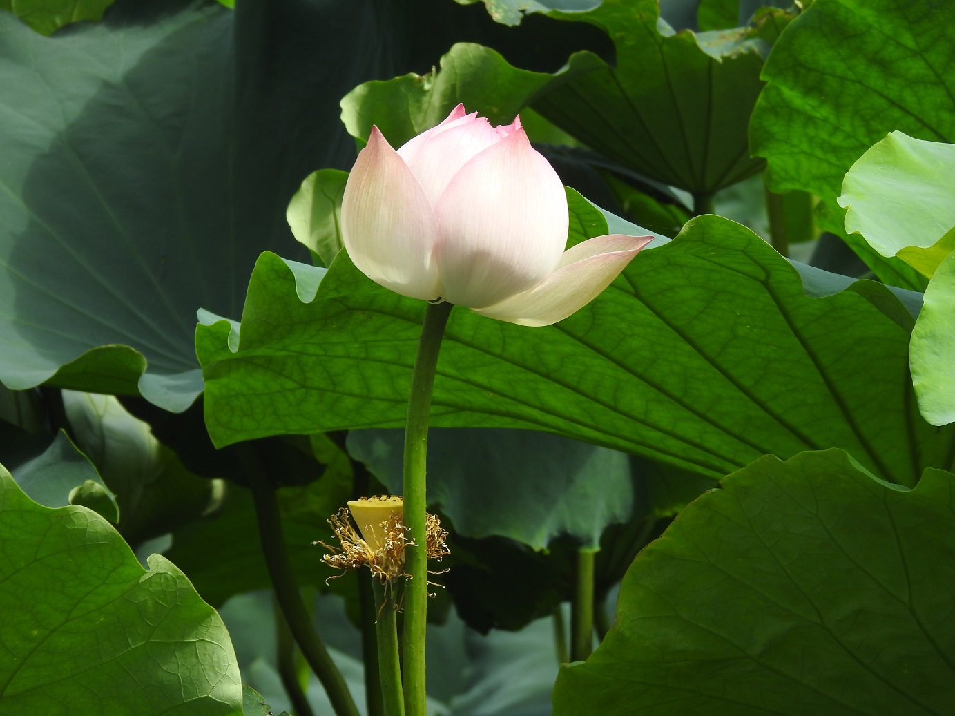 花の中心部に,複数の心皮が放射状に融合しためしべを形成します。先端部は平坦で柱頭盤と呼ばれます。一応,めしべは1本と数えられます。