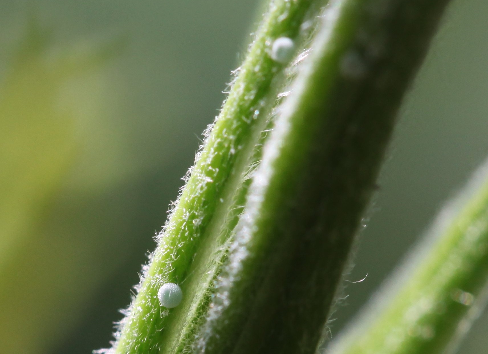 カイノキに生まれた卵。 残念ながら幼虫は成長しなかった。