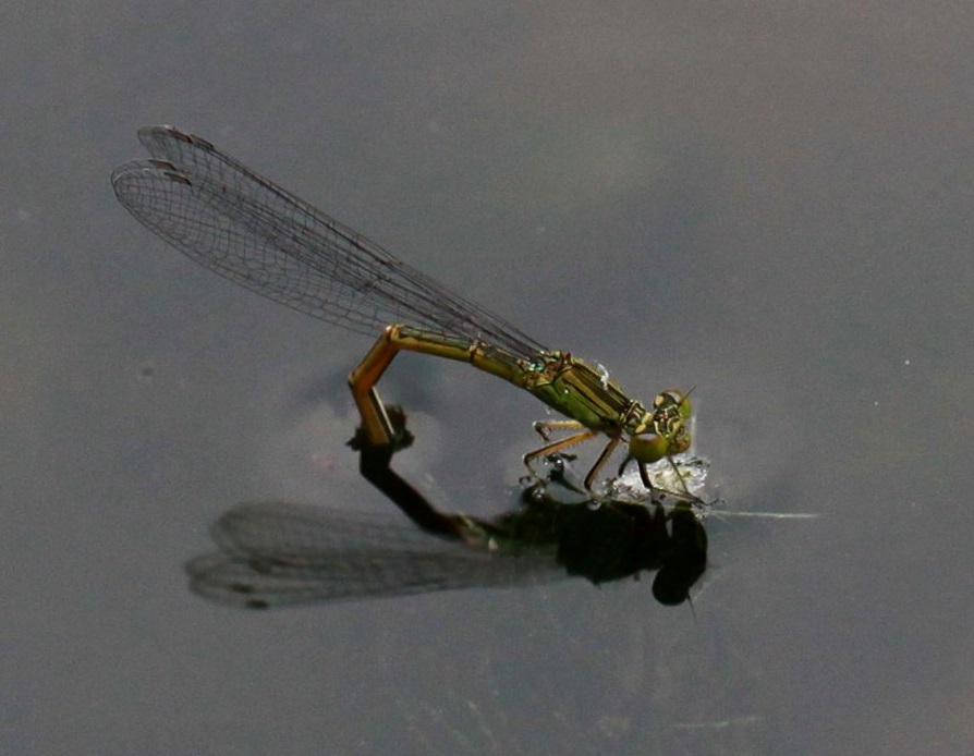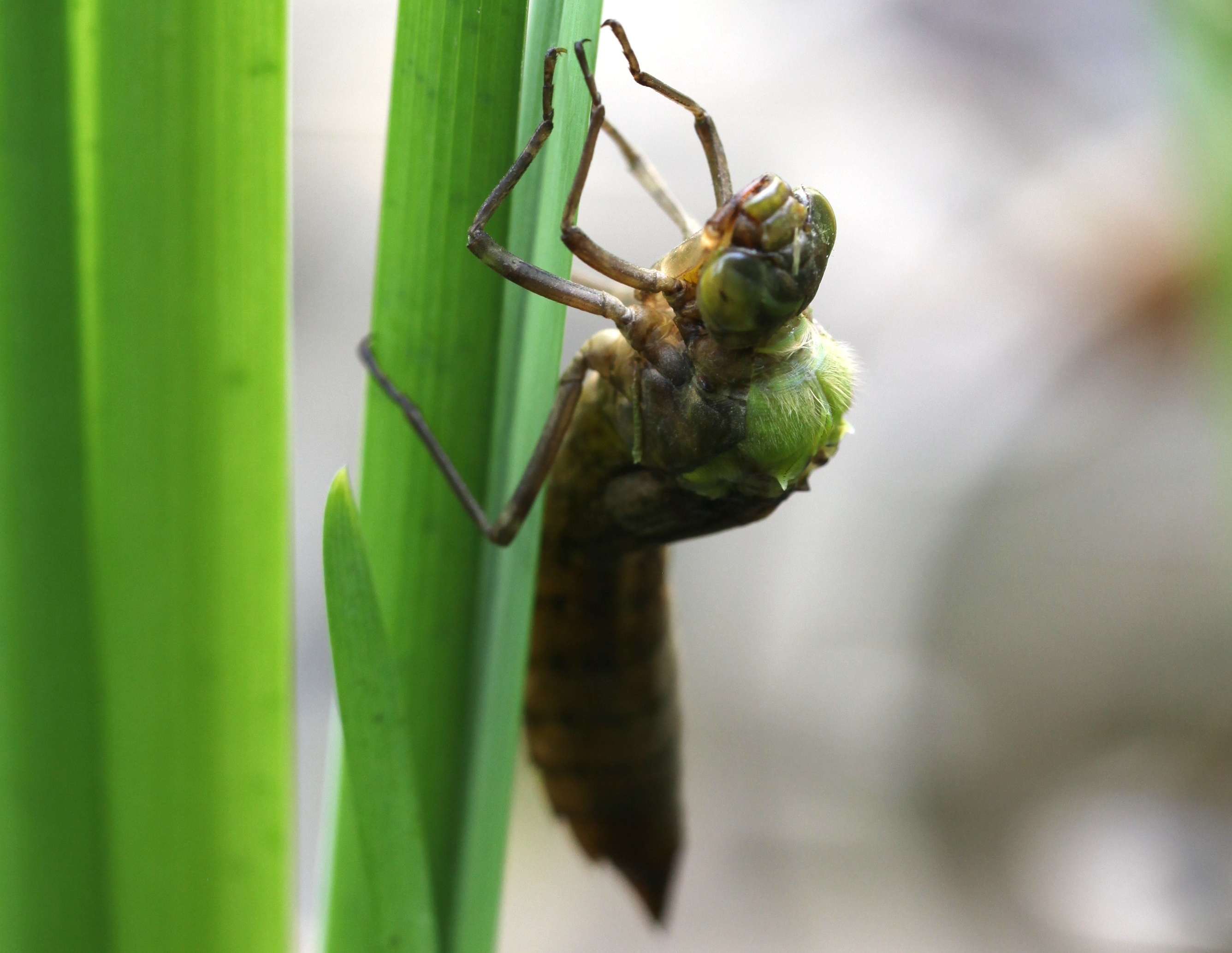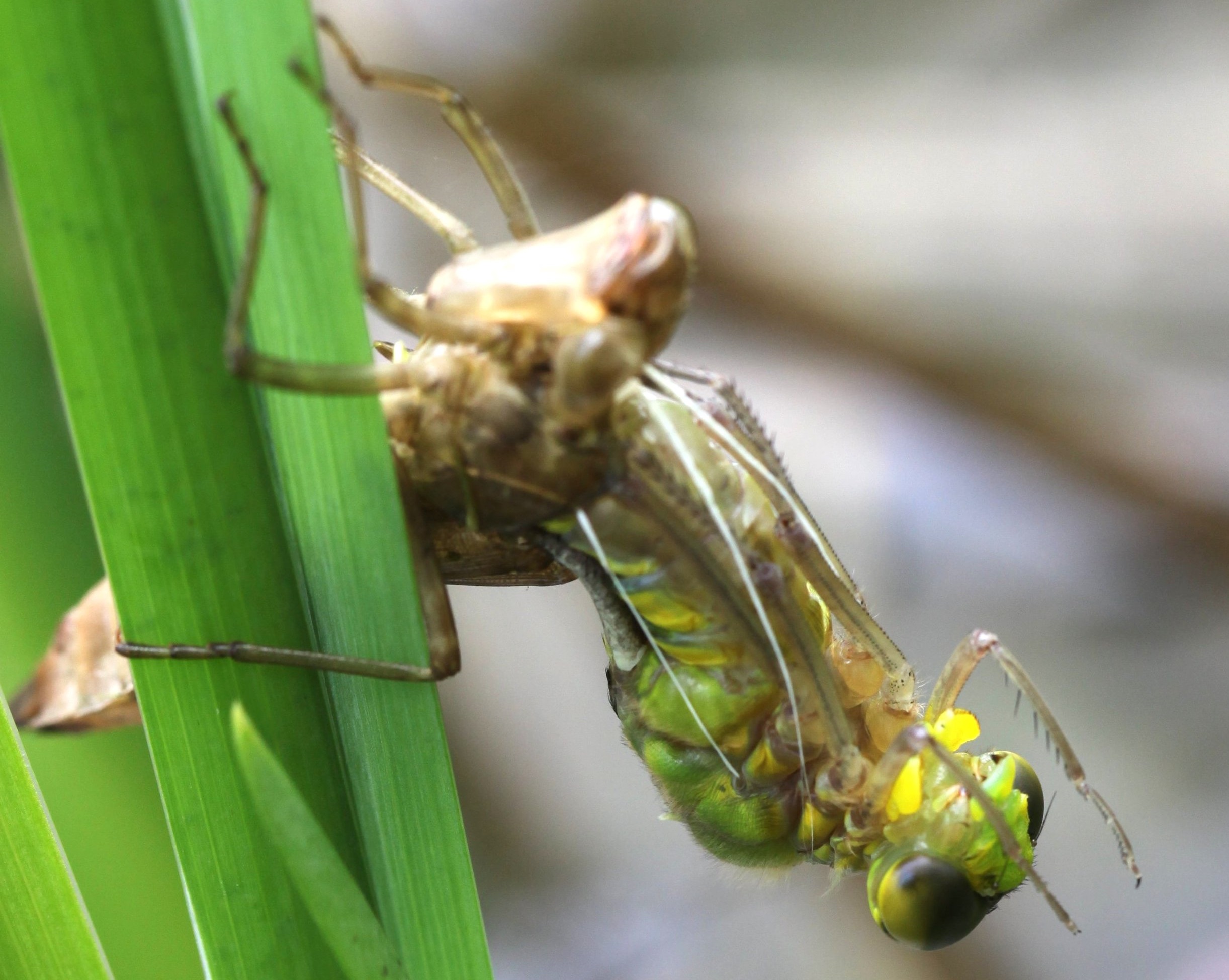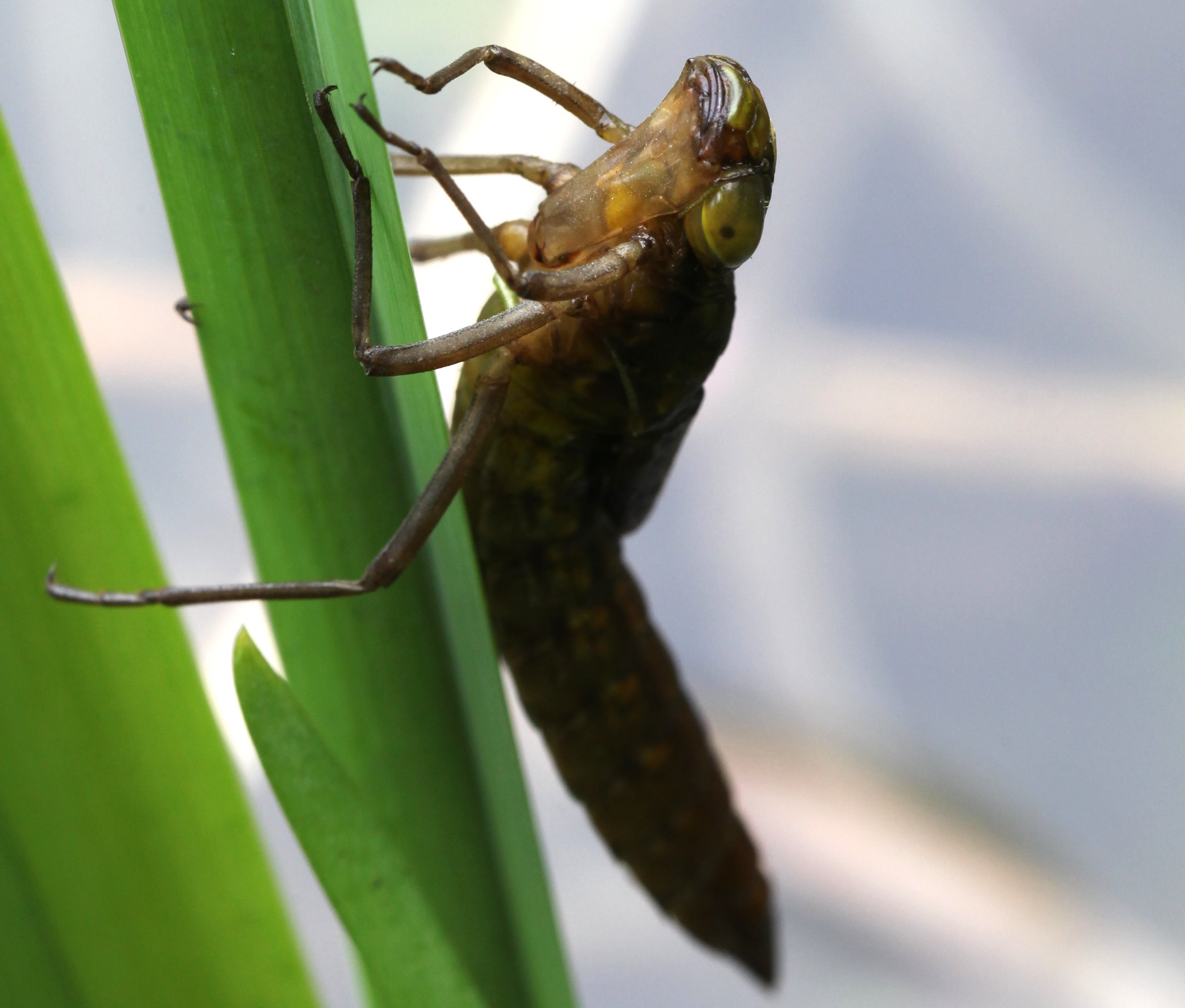 庭の池には様々な生き物が住み着いている。特にギンヤンマのヤゴが多い。毎年4月の晴れた日には一斉に成虫となり飛び立っていく。時には十数匹も羽化している。その横でコガタノゲンゴロウが数匹泳ぎ回っている。アメンボも負けずに泳いでいる。