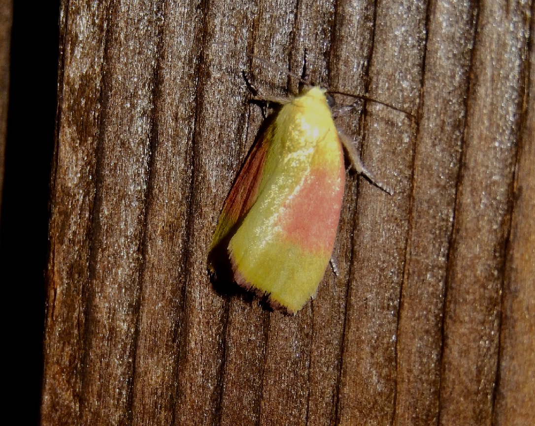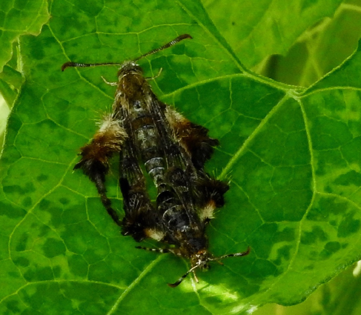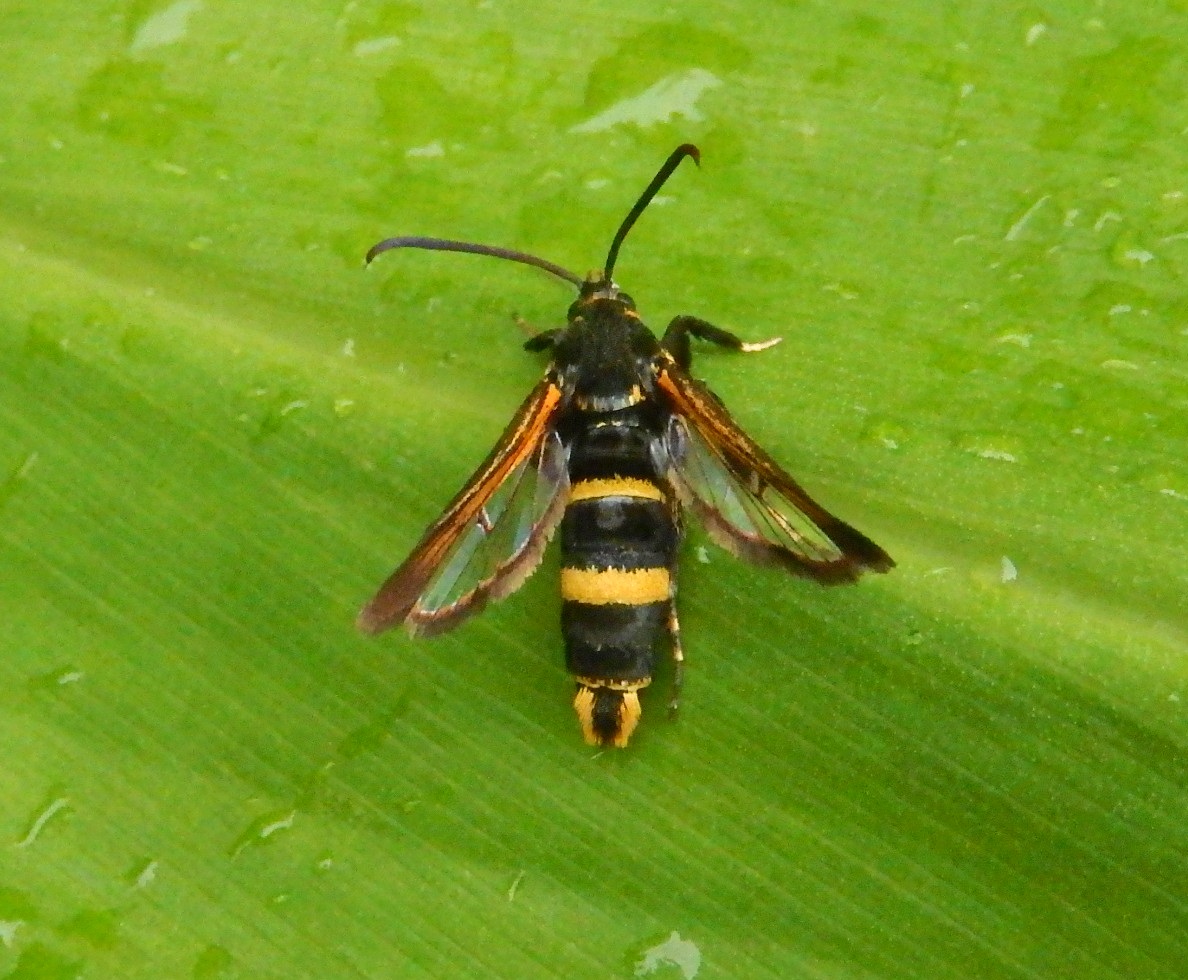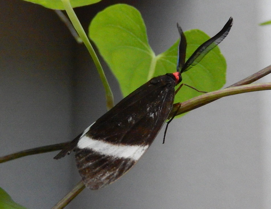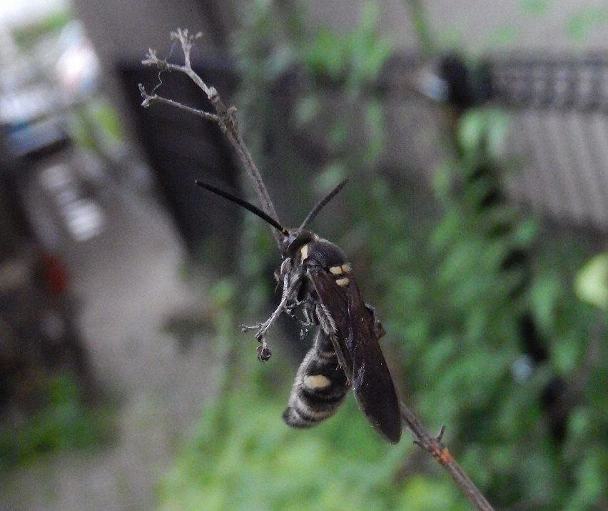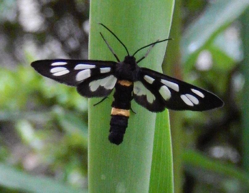 昼間活動する蛾です。頭部の赤が何となくホタルに似た感じもします。