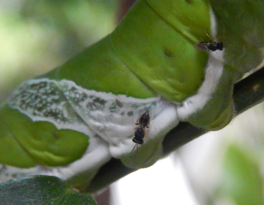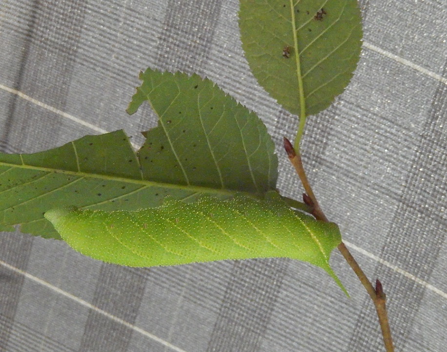 尾端に毛塊と呼ばれる構造があり,ぐるぐるまわしていました。幼虫はニガウリなどを食べるそうです。