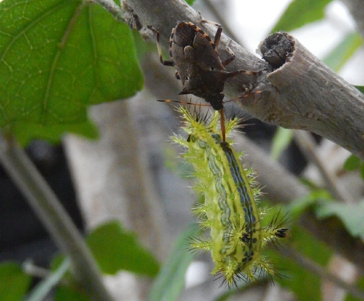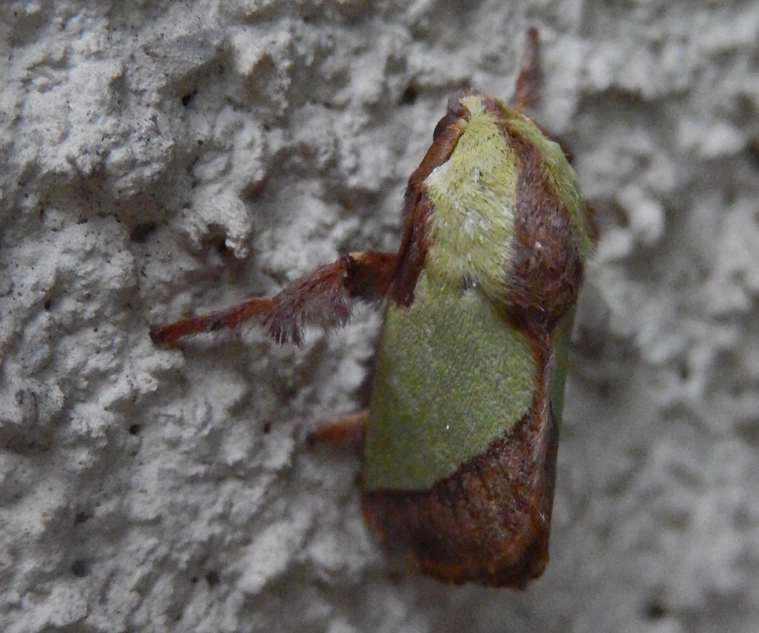 外来種のイラガです。幼虫は幅広い種類の植物をたべるようです。