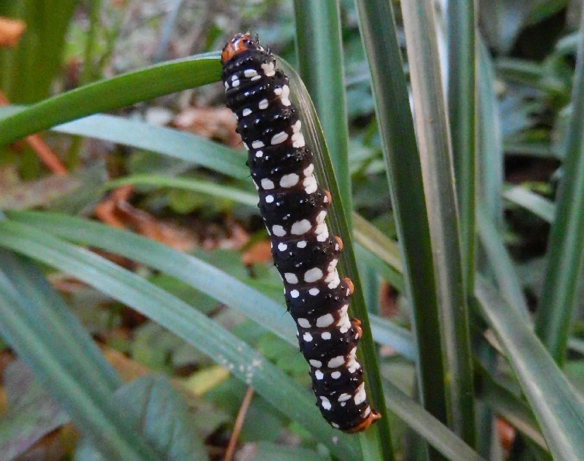 ヒガンバナの葉で毎年見かけるイモムシです。スイセンやタマスダレも食べるとされますが,大量に発生したことはないようです。