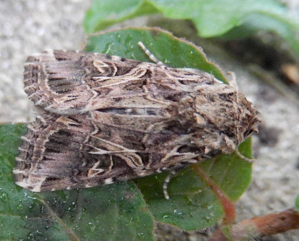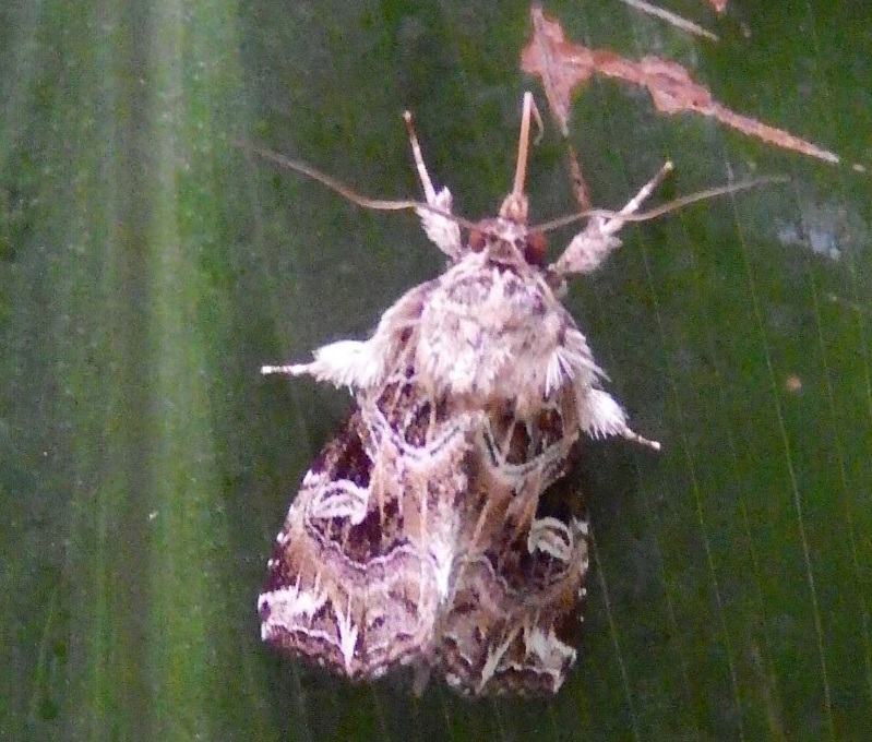 前翅外側の線(写真では上)が2つのこぶのようにみえます。