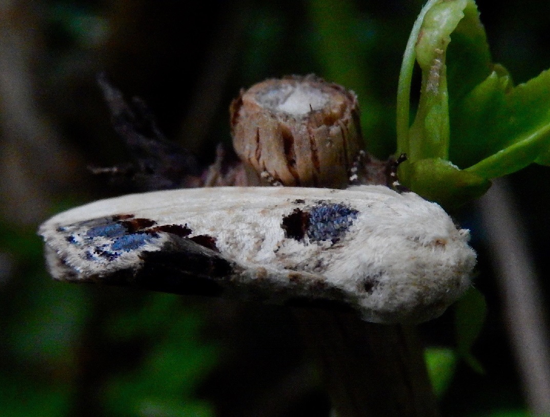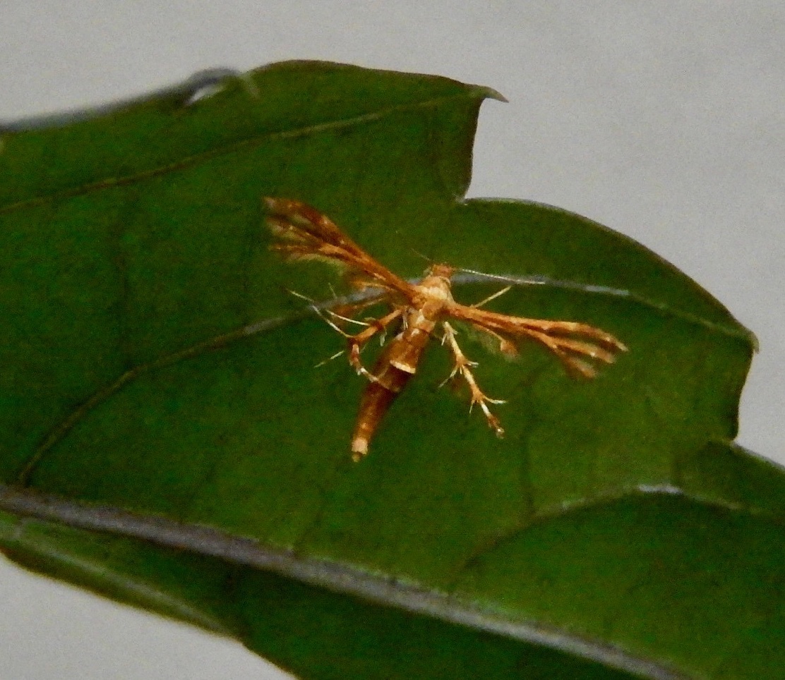 羽を閉じて留まっていると全く同じガとは思われません。種内の変異も大きい気がします。