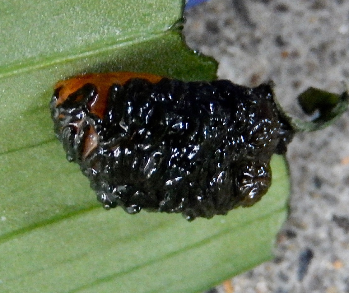 ヤブガラシの葉を食べているところです。食草はノブドウやツタなどのブドウ科の植物だそうです。