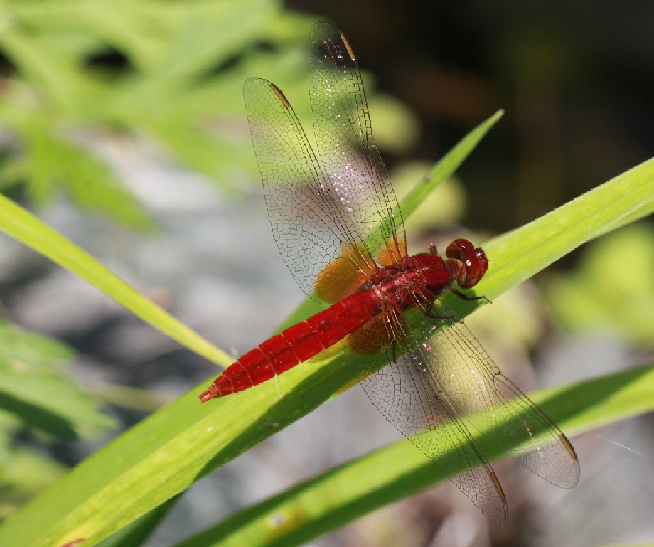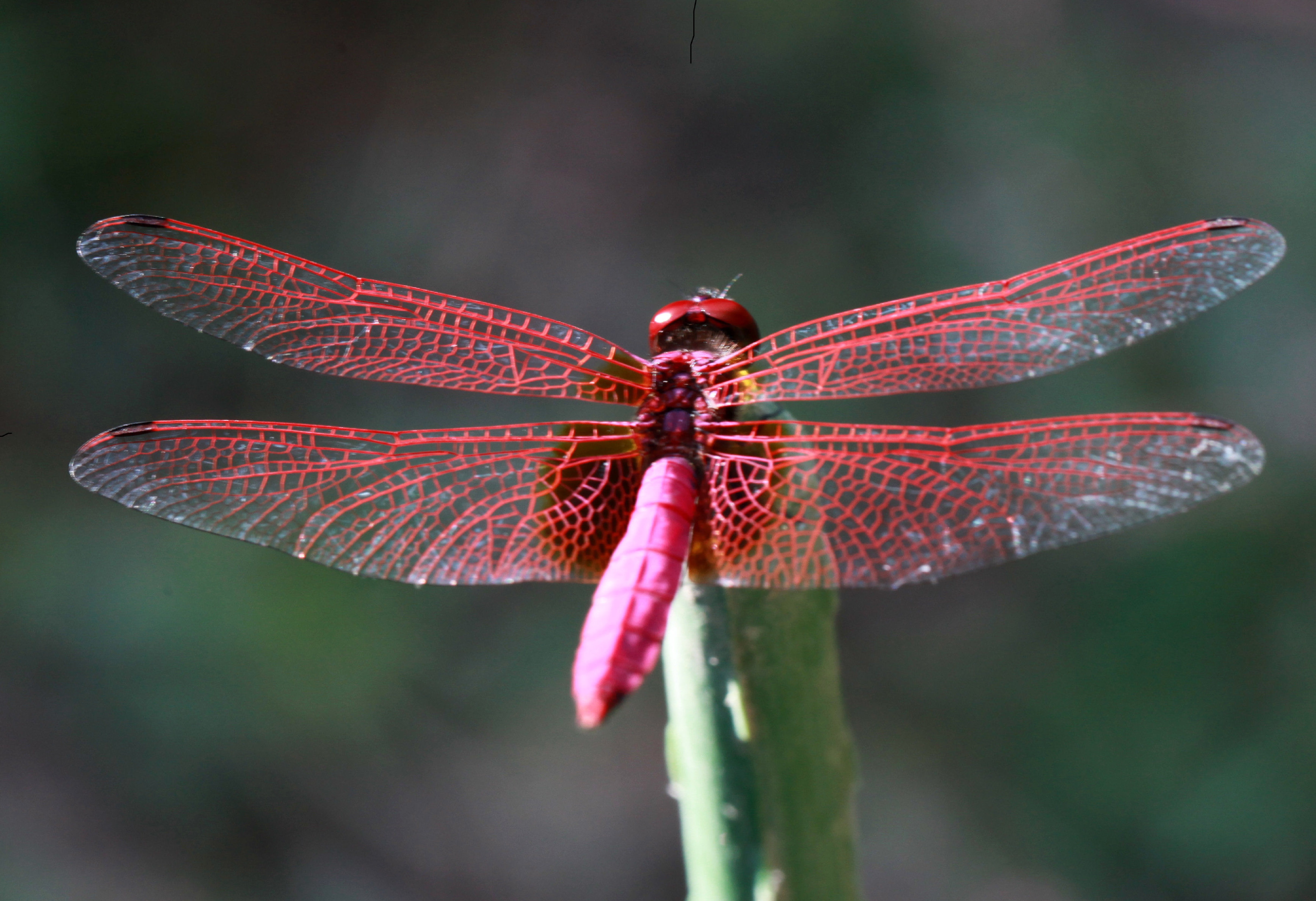 後翅が少し桃色をしているのが特徴です。留まっているときは目立ちませんが,飛んでいるときははっきりわかります。