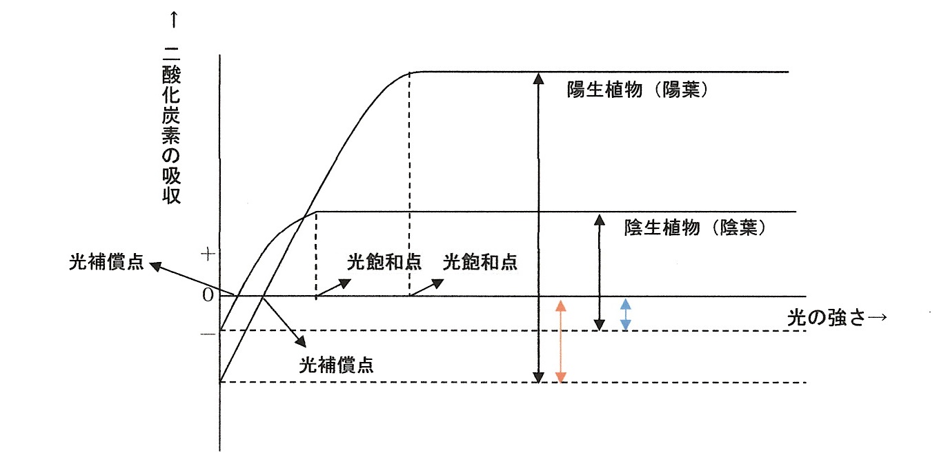 ・・・陽生植物と陰生植物の生存戦略を光合成と呼吸との量的関係で理解しよう。