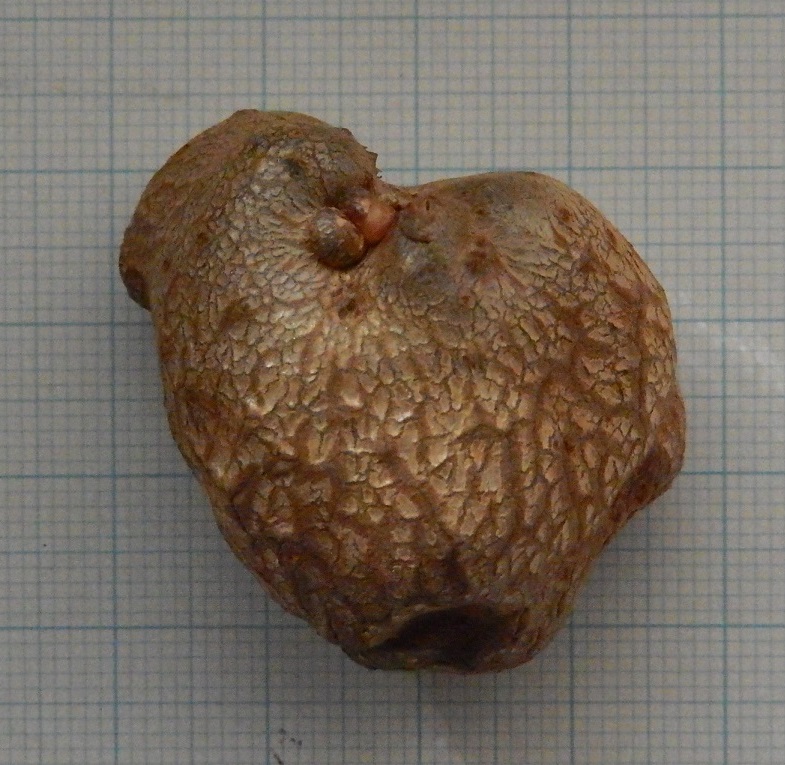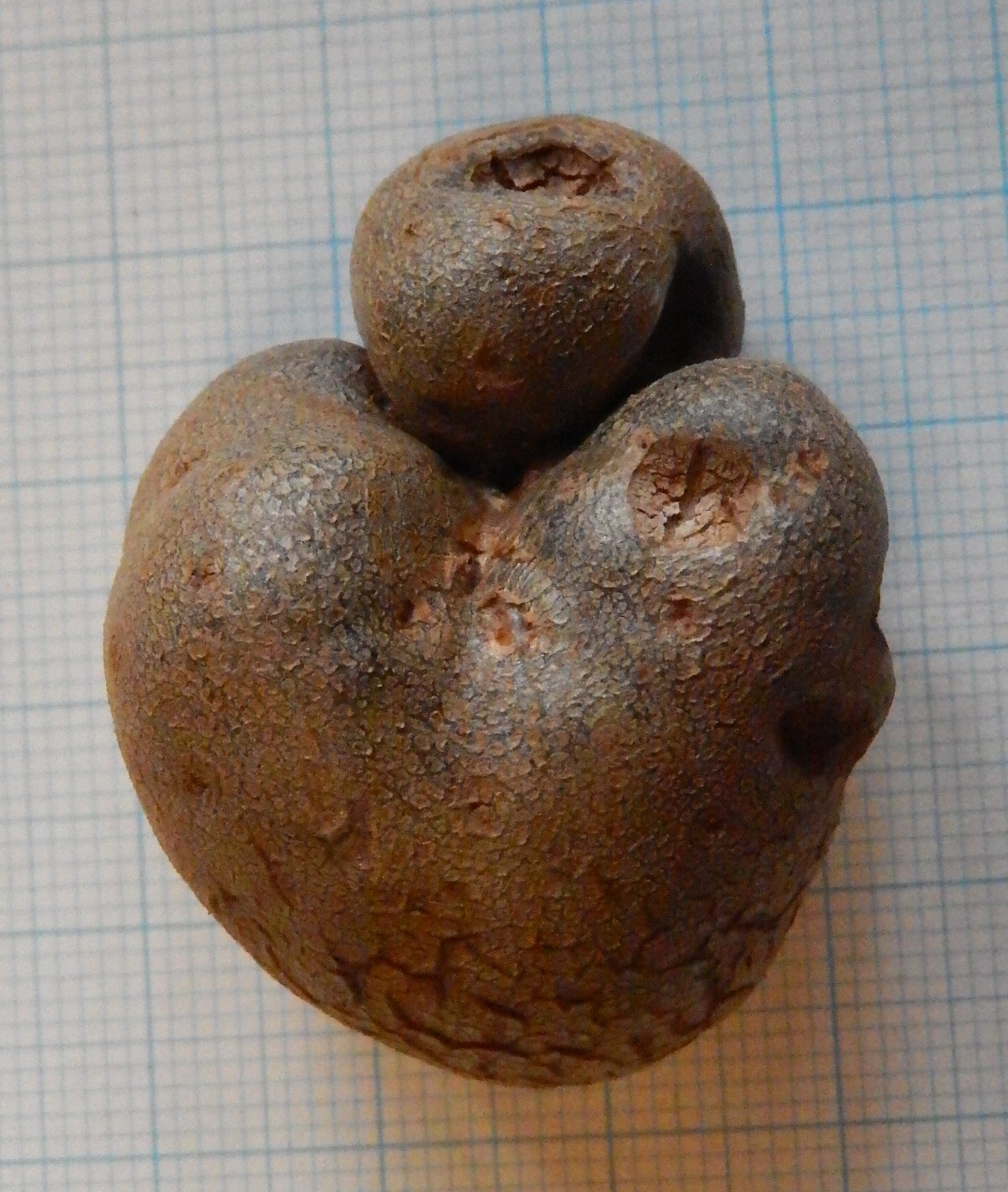2021年秋のむかごの収穫で,前記載の記録が破られましたので報告します。長さはむかごの付着点を基準(縦)にしました。やはり,複数のむかごが融合したようにもみえます。