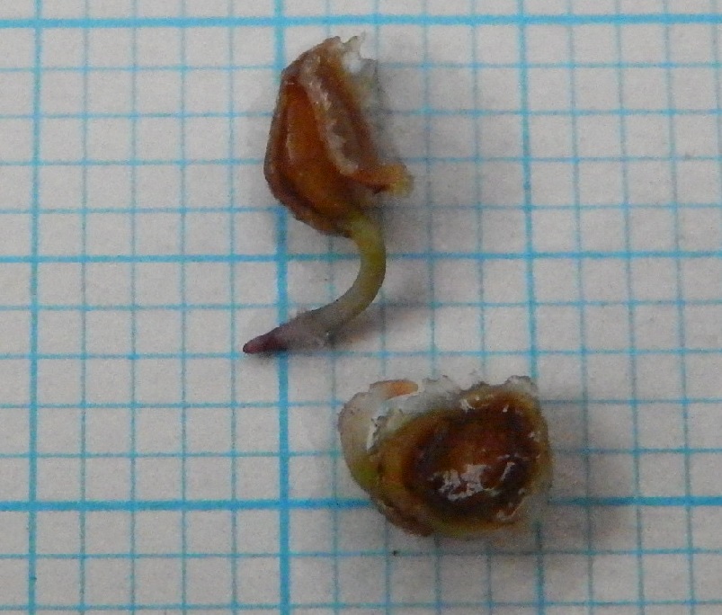 1ヶ月程度枯れなかった花柄の子房を手でつぶすと,このようなC3の種子が現れました。