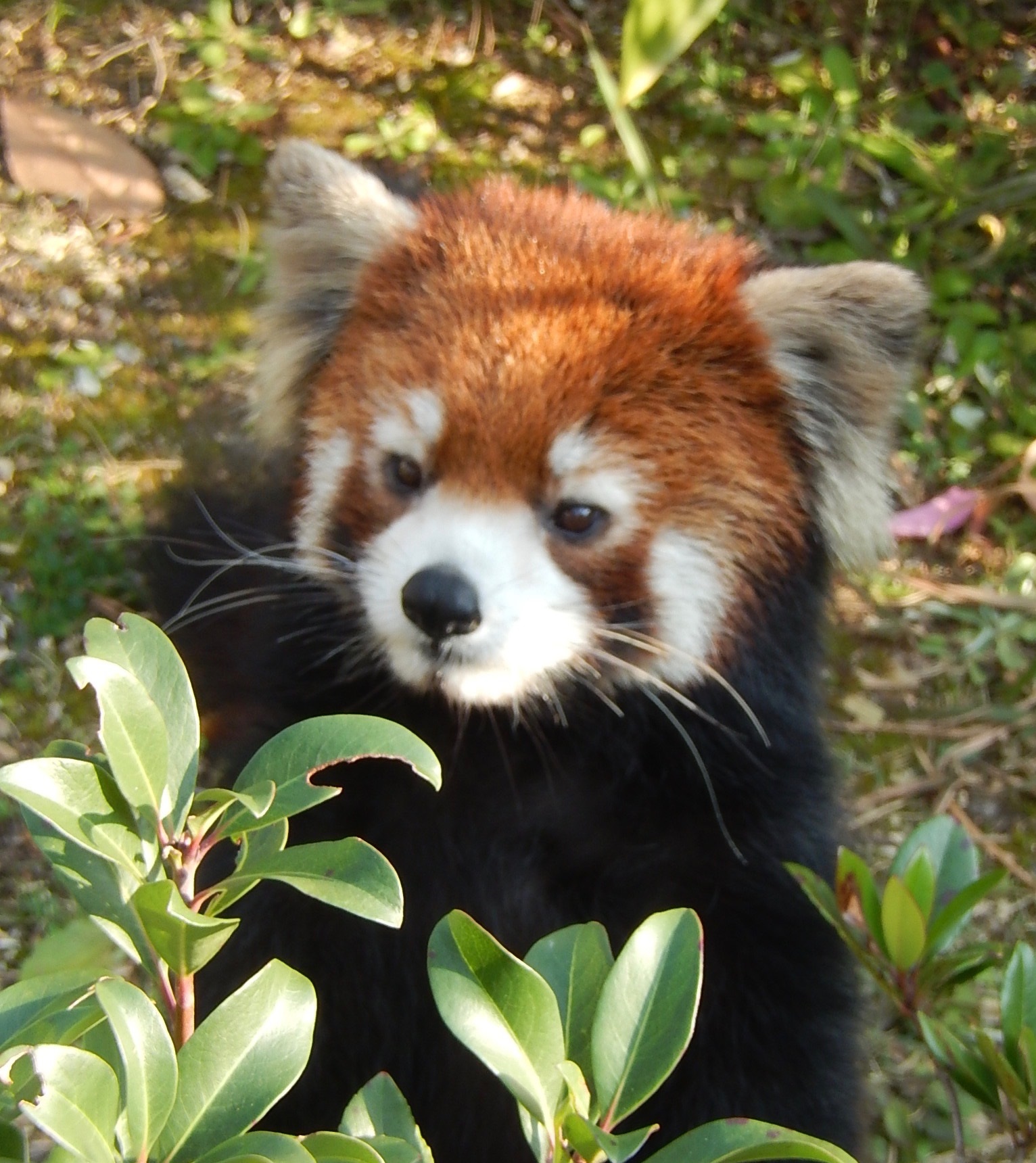 園の女性獣医さんに講話の後に園内を案内してもらいました。彼女たちの自慢は動物とも信頼関係です。「○○とは友達ですから呼んだら来ますよ。」とのこと。本当に来るんですね。私は呼ばれて近づいてきたチンパンジーがあまりに優しい目をしているのに驚きました(写真なし)。呼ばれて近づいてきたレッサーパンダもしばらくカメラサービスをしてくれました。これなら園のホームページにアクセスすると名前を調べることもできます。レッサーパンダは一応猛獣とのことですが,麻酔なしで採血ができるそうです。