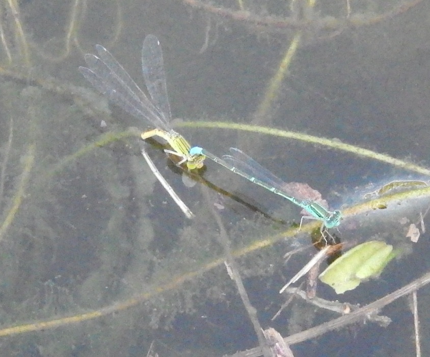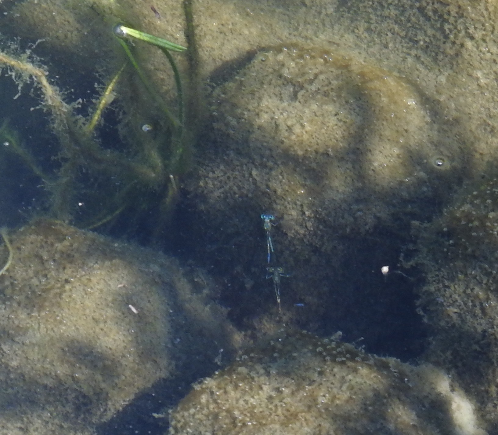 イトトンボの仲間が産卵していました。テレビでは見たことがあったのですが,なんと,ペアで潜水していきました。