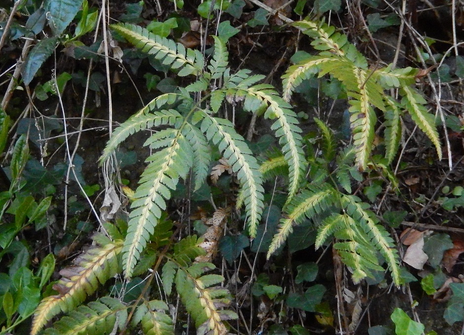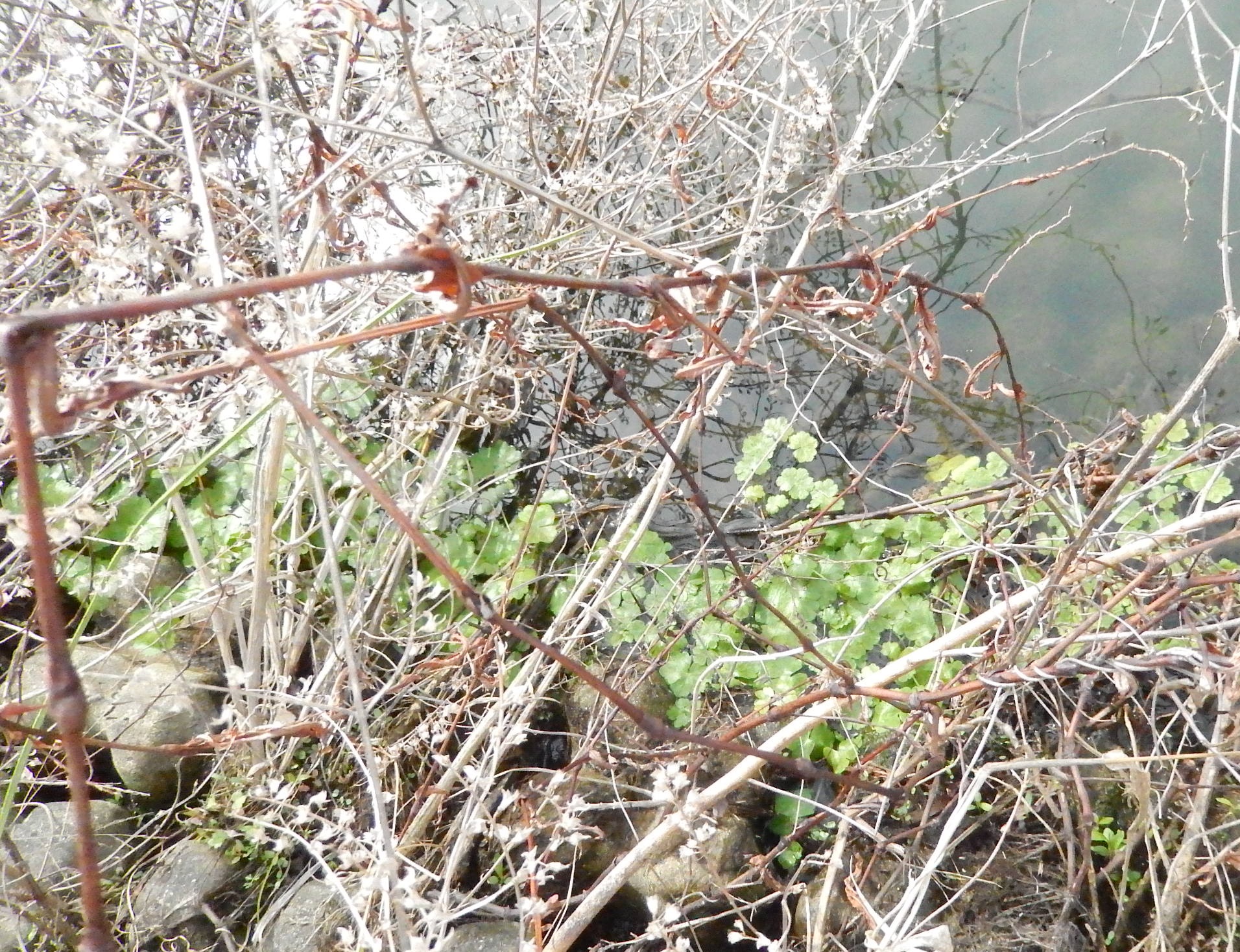地上部に除草剤が撒かれた水路西側が今回はもっともよく葉を展開していました。多くの果実を実らせた栄養体があったのもこのあたりでした。