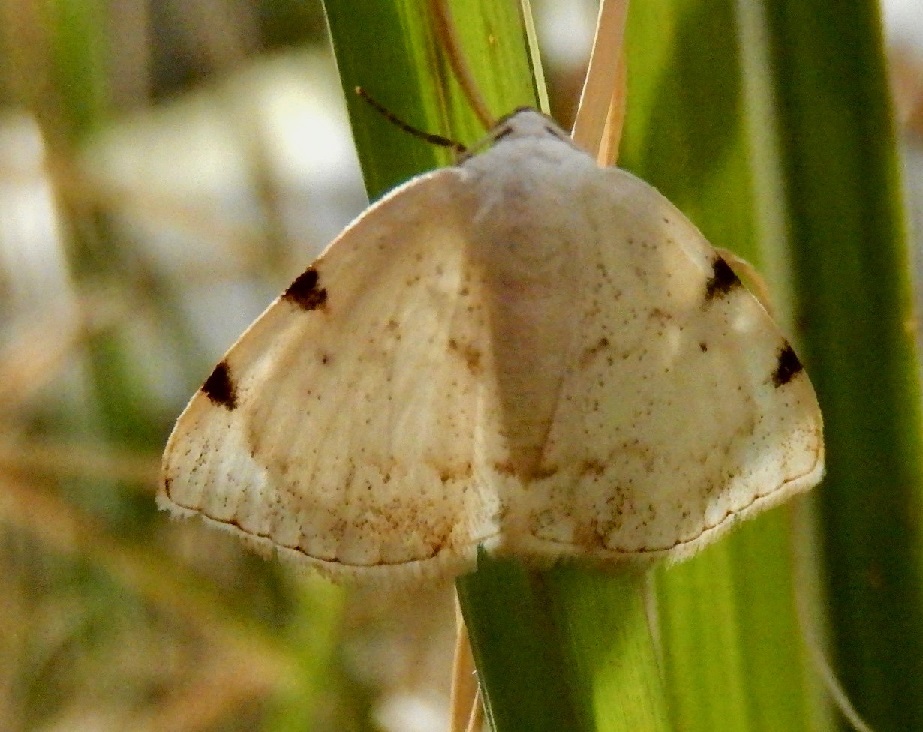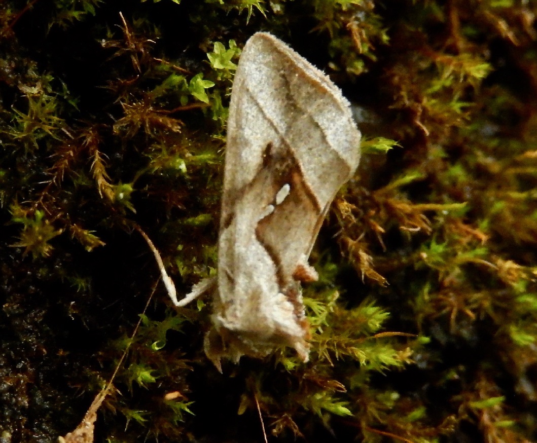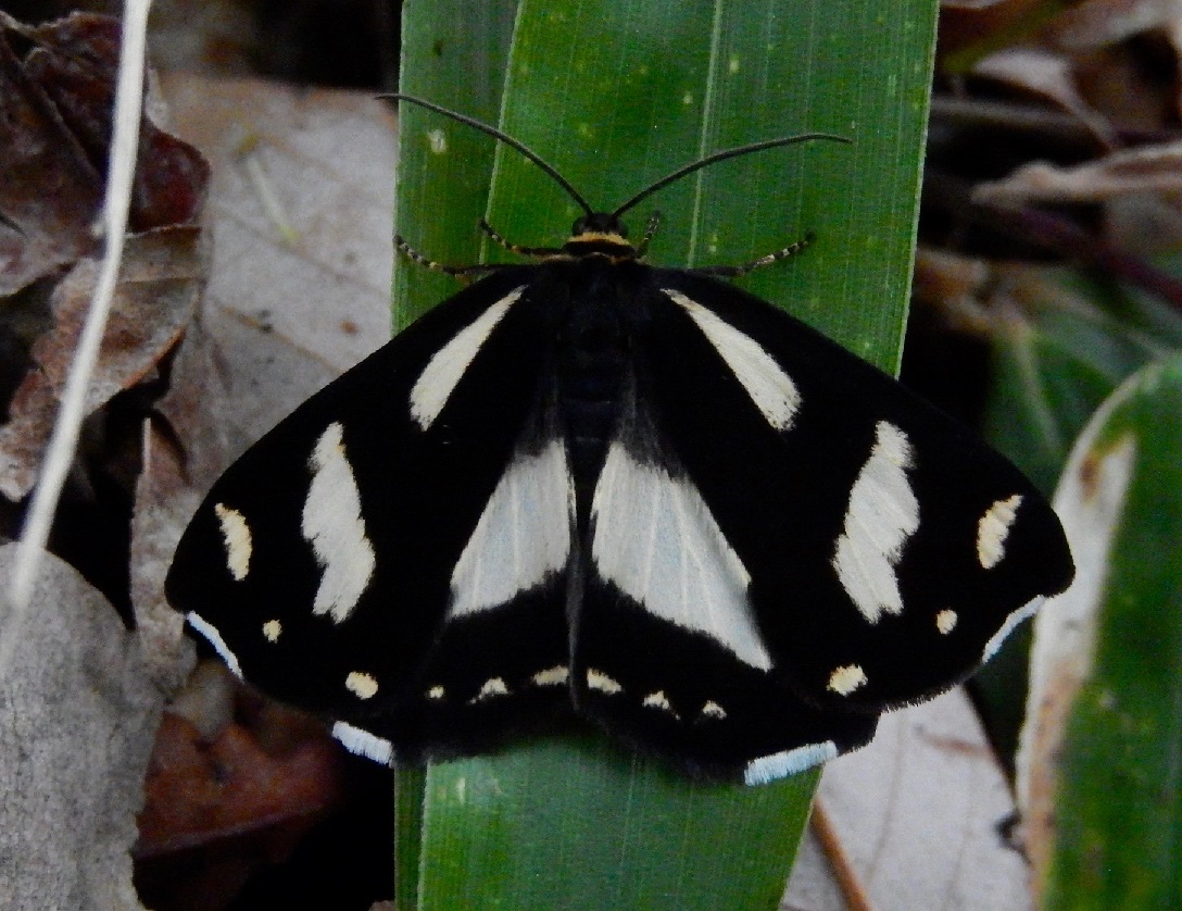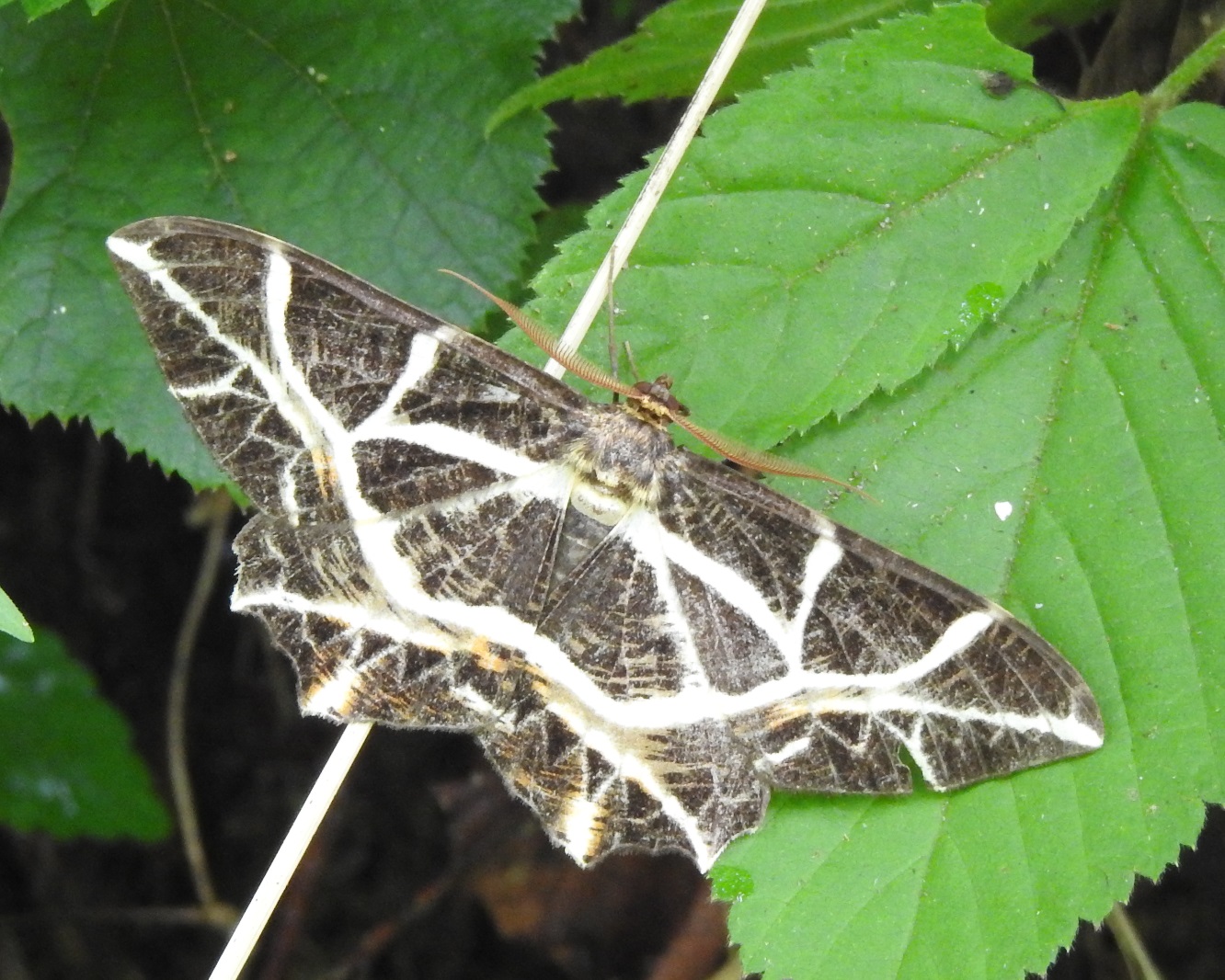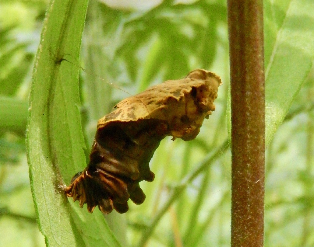 今回の観察会では,今年5月に紹介したキンモンガが何回も現れました。キンモンガは昼行性のガで花にも来るようです。そこで,話題になったのが,「チョウとガの違い」です。会員のひとりが,「チョウは・・・,ガは・・・・。しかし,結局,決定的な違いはないので,そのグループ(分類郡)を総合的に判断して,ガかチョウかを判断してどちらかに入れています。・・・」という主旨の説明をされていました。要するにチョウとかガというのは系統的な分類の単位ではないということです。チョウとガを区別する単語が存在しない言語も多数あるようです。今回はコミスジというチョウを比較のために掲載しました。コミスジは多くのガの仲間のように翅を広げたまま止まっていることが多いようです。写真の個体は残念ながら,羽化で何らかのトラブルがあったようで,後翅は十分に伸びきれなかったようです。