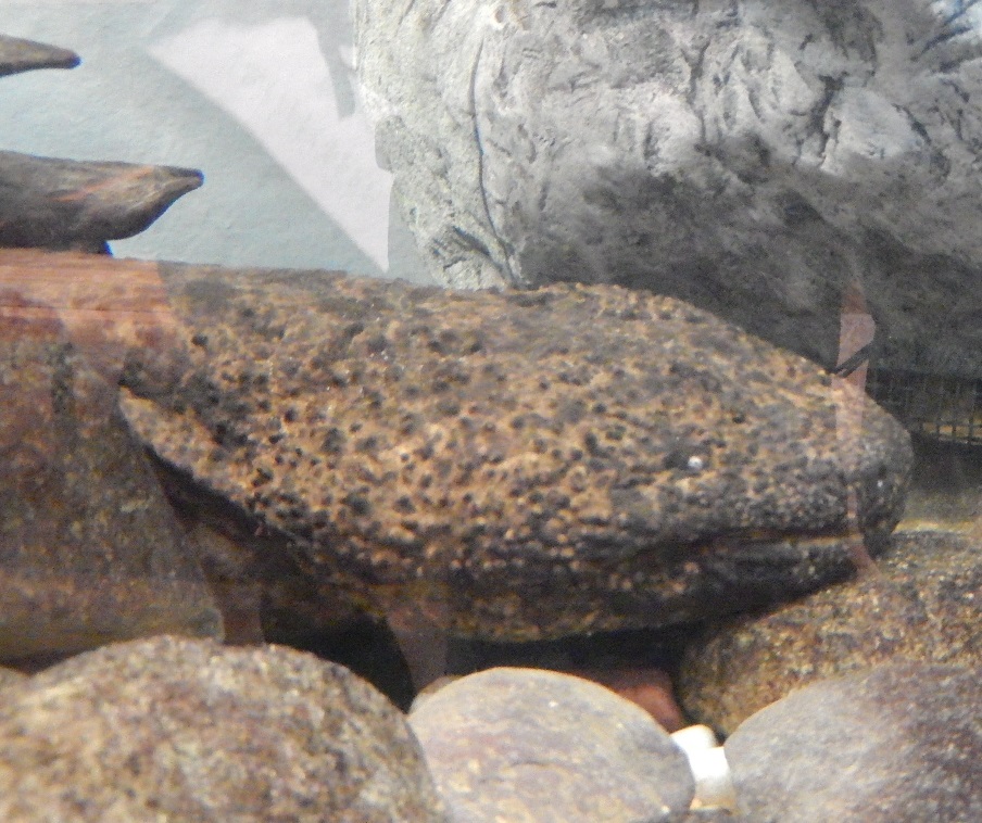 はんざきセンターでは,オオサンショウウオの説明や展示の見学・餌やり体験などがありました。私が最も興味を持ったのが,オオサンショウウオの繁殖行動です。繁殖期になると,強い雄は産卵に適した洞穴に縄張りを構え,繁殖可能な雌以外はすべて追い出すそうです。ところが,いったん成熟した雌が巣の中にはいってくると追い出し行動がなくなり,結果として複数の雄が繁殖に参加できることになります。まずこの話を聞いて懐疑的な人は,「この行動は観察水槽の中で何回位確認されたのか」とか「野外でもこのような繁殖行動が確認できているのか」という点に関心を持たれるでしょう。残念ながら私もこれらの点を質問することはできていません。しかし,この観察がオオサンショウウオの繁殖行動で普通に起こることだとすれば,1個体の雌は複数の雄の遺伝子を伝えることになります。次世代には俗に言う強い雄の遺伝子だけでなく多様な遺伝子を伝えることになり,動物行動学や進化論にとって大変重要な示唆を与えてくれていると感じました。