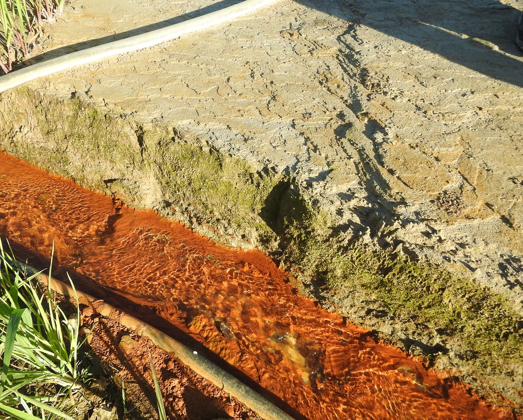 水路が褐色に見えるのは微生物の繁殖によるものです。