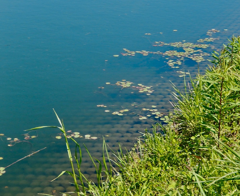 水温が高めに推移していることもあり,アサザの成長は前年よりよいようです。この中にブラジルチドメグサが紛れ込んでいるようには見えませんが・・・。