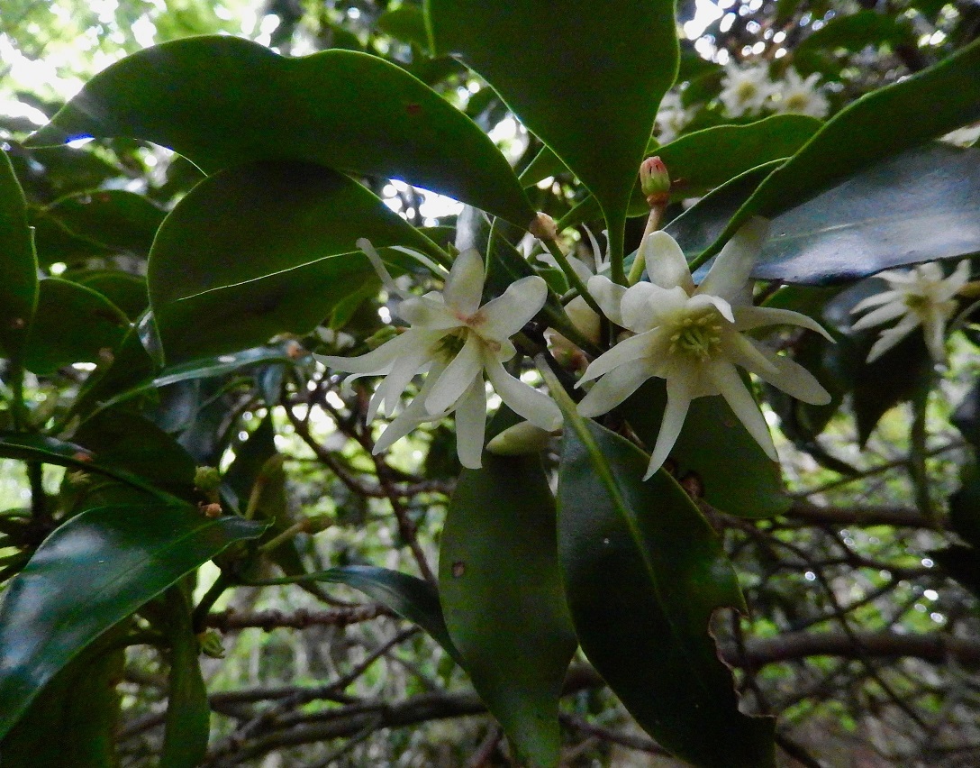 花は淡紅色のものもあるそうです。葯は紫色をしています。