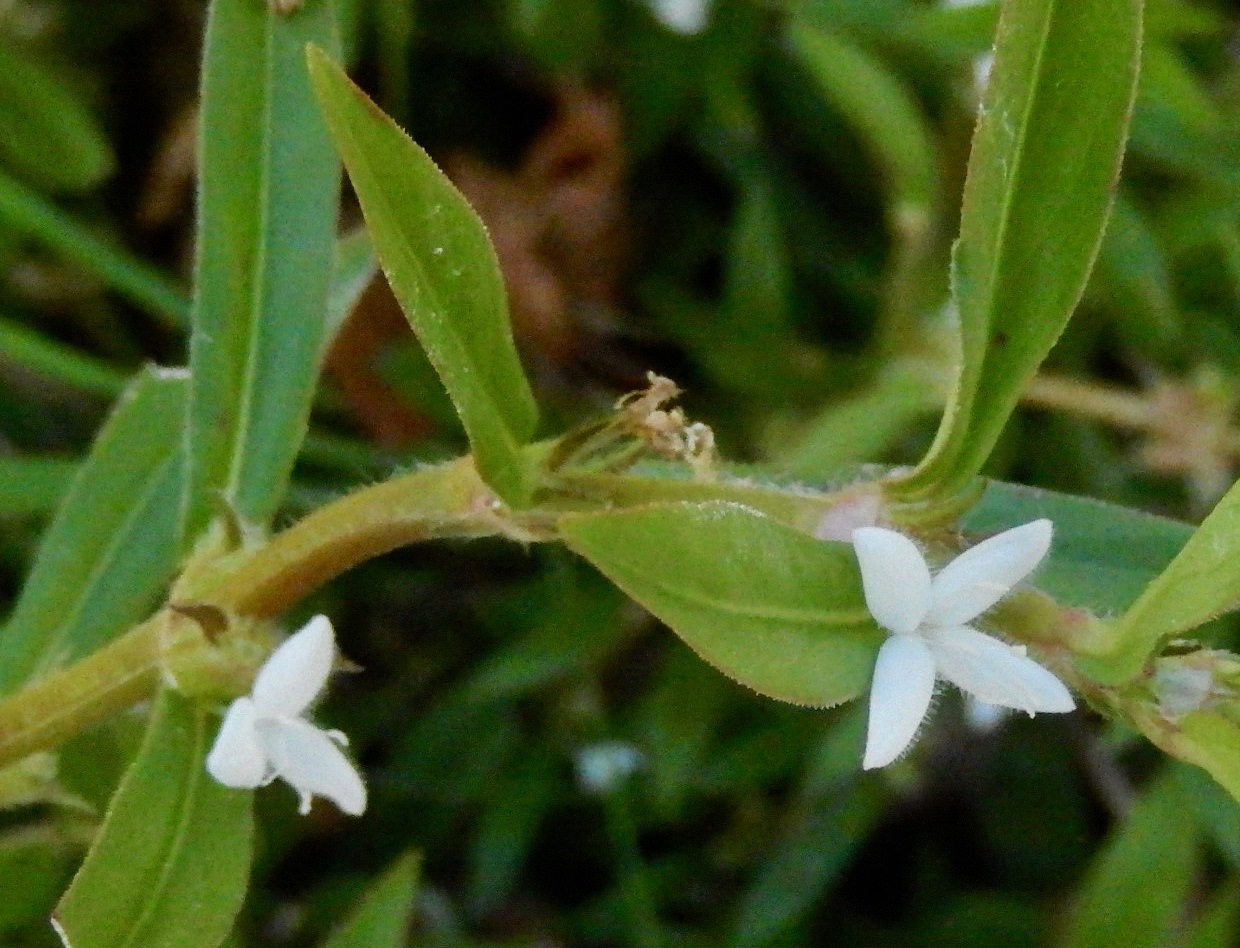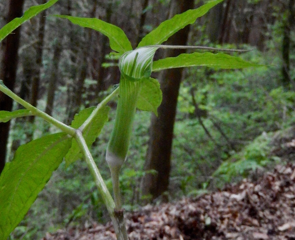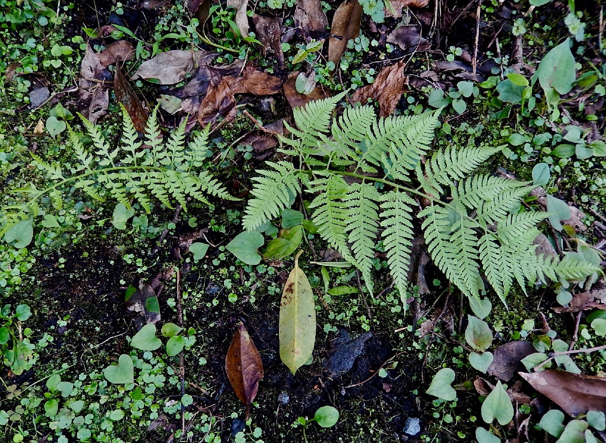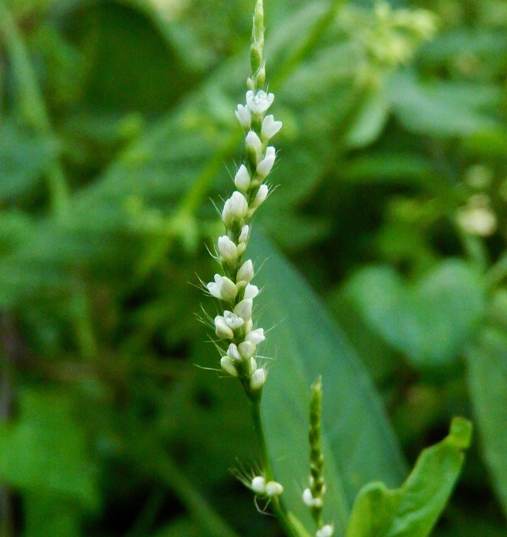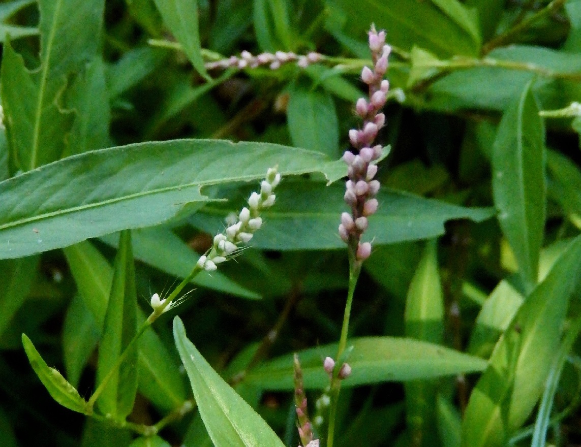 今回話題になったのが,写真の白いタデ科植物です。私は,タデ科は苦手なので,皆さんの話を聞いていると,「このようなタデは見たことがない・・・」などと,新発見(確認)ではないかという主旨の発言もありました。しばらく進むと,今度は赤い花と白い花とが混在して咲いている場所が見つかりました。赤い花を観るとどうも「イヌタデ」のように見えます。議論でも,ともに「イヌタデ」であるという決論になりました。勿論,議論で同定する訳ではありません。具体的な形質を比較する必要があります。何が議論されていたかは明確な記憶がありませんので,珍しくサンプルを持ち帰り自宅でも調べてみました。葉の基部にある托葉鞘(茎を筒状に包み込んでいる部分)にある毛が長いのが「イヌタデ」と「ハナタデ」です。典型的な図や図鑑形式の写真とサンプルとを比較すると,「イヌタデ」は花がもっと密に,「ハナタデ」はもっとまばらに付くようです。なお,写真のみのネット情報では,判断ができませんね。そこで,いつもお世話になっている「三河の植物観察」の記載を参考にすると,「ハナタデ」は「小花柄がイヌタデより長い。」という点で,「イヌタデ」という決論を支持することにしました。気になる記載としては,「ハナタデ」の冒頭にある記載で「葉がイヌタデと似ているが日陰にも生え,別名はヤブタデと呼ばれ,林縁で普通にみられる。イヌタデと同じような場所に生えるものは花もイヌタデに似ている。」という点です。今回観察された「イヌタデ」と同定した植物は,林縁で多く見られました。そこでかってな想像ですが,「ハナタデ(ヤブタデ)のように日陰にはえているイヌタデは,ハナタデに似る。」こともあるのではないかと思いました。植物の同定は本当に変異が多くて大変だなと思います。