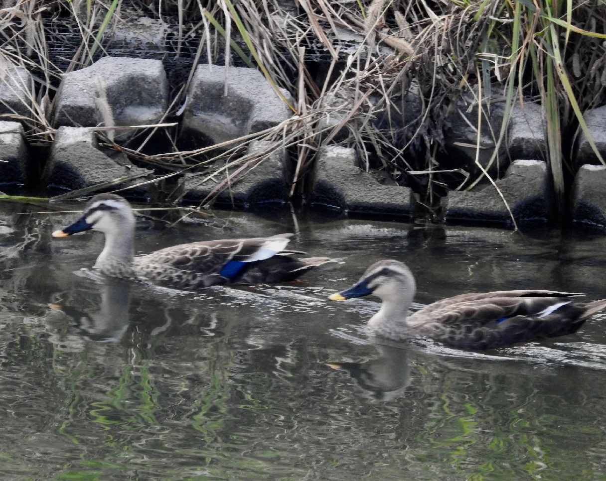 (3列風切?)羽の縁の白が大きい方(左)が雄です。数羽で群れていました。