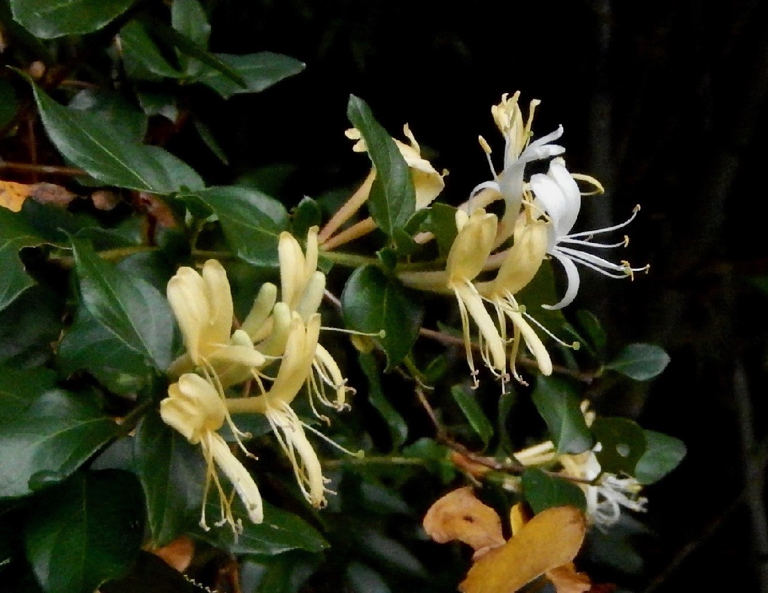 別名金銀花ともいうそうです。問題は,白から黄色に変化するまでの時間と,おしべのやくから花粉放出の変化ですかね。