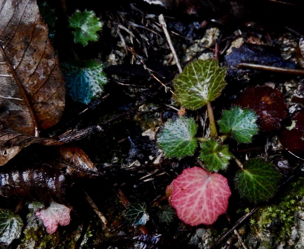 ユキノシタの葉が1枚だけ紅葉していたので写真を撮りました。ネットで検索してみると,紅葉している写真はありましたが,その紅葉の仕組みを説明している記事は見つけることができませんでした。ユキノシタの葉は原形質分離の実験でよく用いられています。裏面の表皮細胞にたくさんのアントシアンを含む細胞が多く,うすい赤色をしていて細胞壁とその内側の形状が顕微鏡でも観察しやすいです。表面もやや赤みを帯びているものもあります。ですから写真の赤い葉は,細胞内の葉緑体が退行したということでしょう。しかし,葉緑体が完全に消滅したのか,それとも,色素だけが分解され再び緑の葉が復活するのかは,継続観察をしてみないとわかりません。